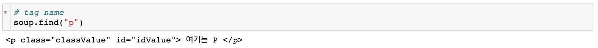 이제 find() 에서 tag name으로 tag를 뽑아오는 방법은 다음과 같다.