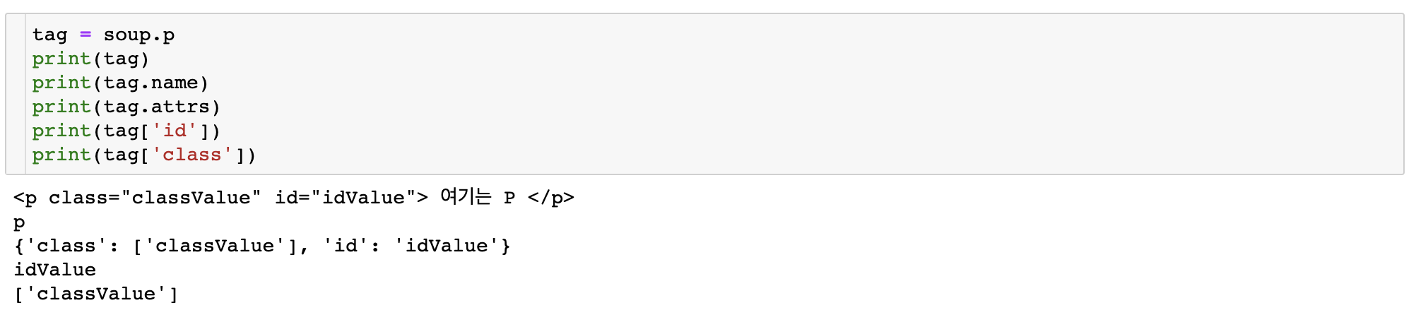 tag['id']로는 id attribute에 해당하는 value,