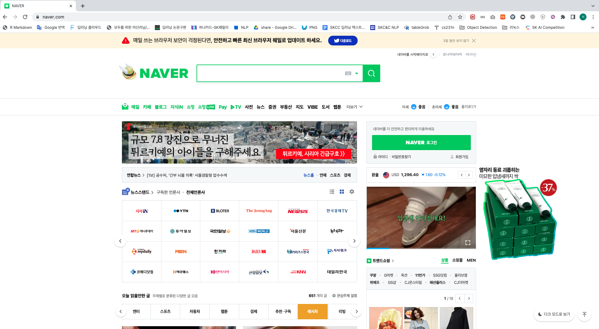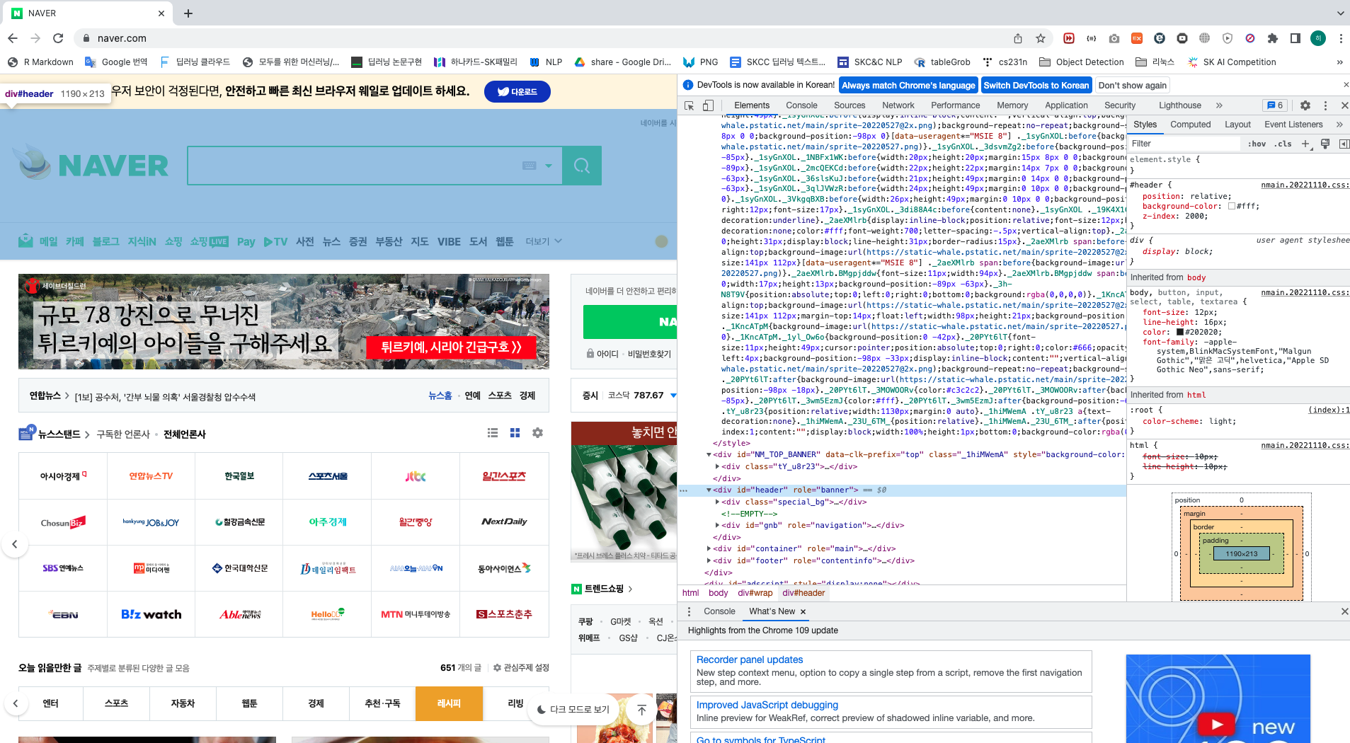 다음은 많이 보는 네이버 웹페이지이다.
