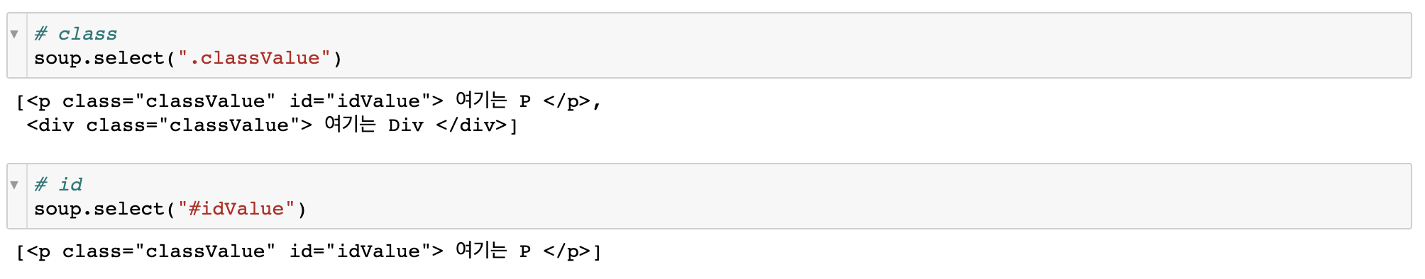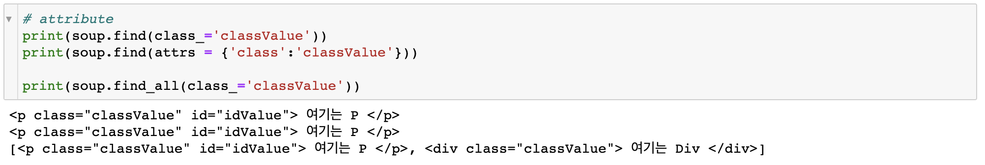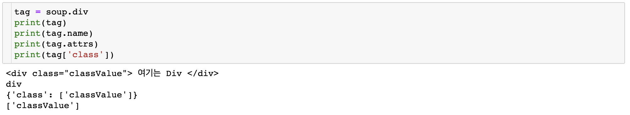 tag['class']로는 class attribute에 해당하는 value를 뽑아올 수 있다.