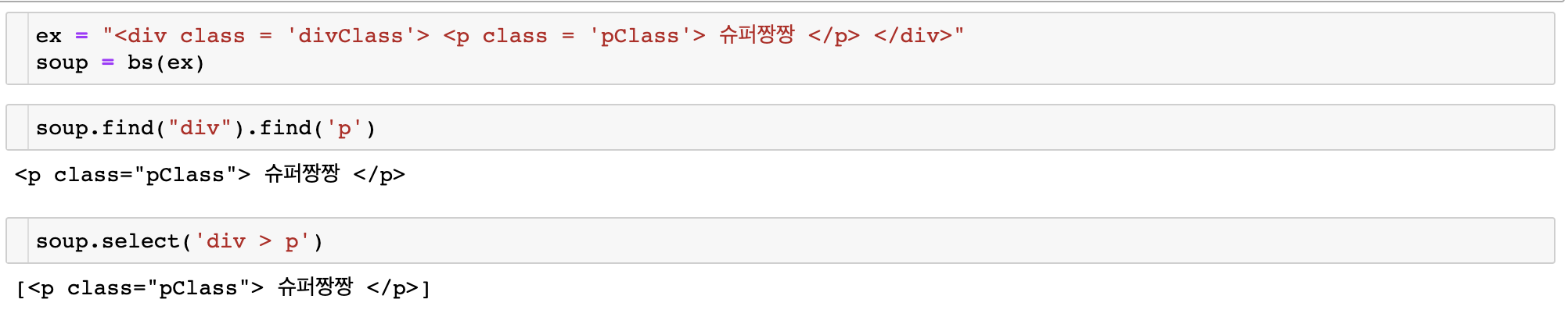 위 예시에서 find()와 find_all()의 차이도 확인할 수 있다.
