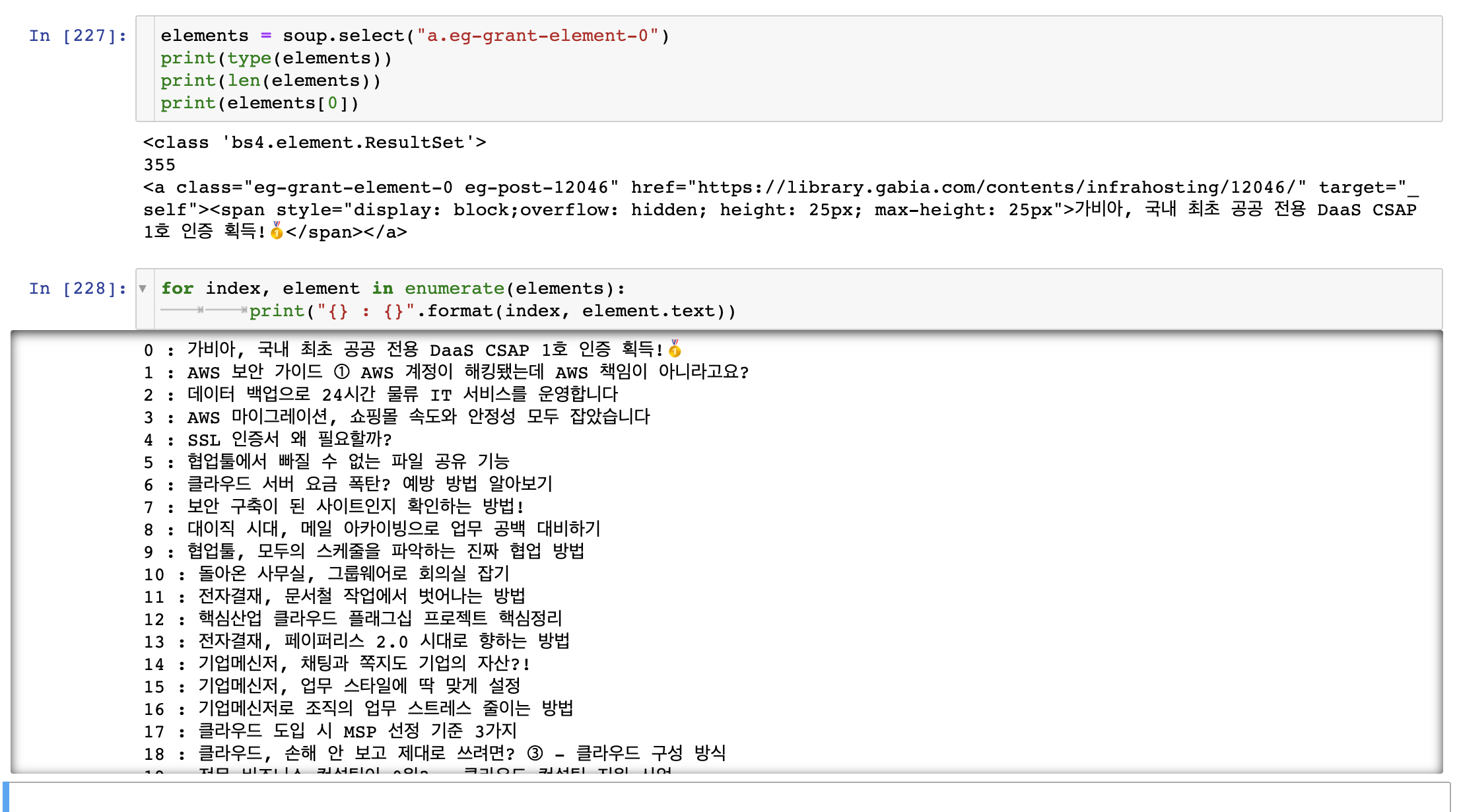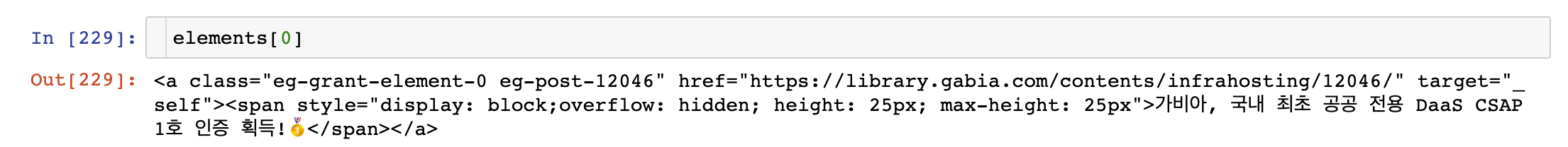 그럼 이전 포스팅에서 배웠던 대로 select()로 "span" tag를 검색해 보겠다.