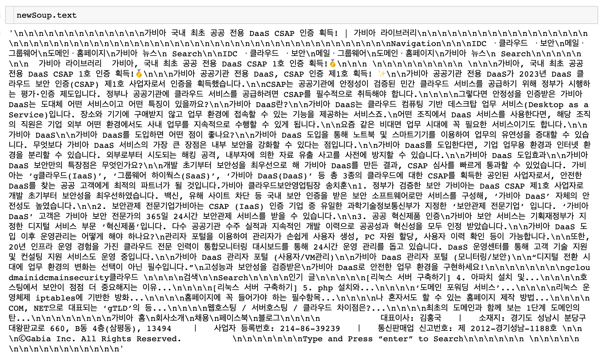 \n 등 지저분하게 추출된 것을 볼 수 있다. ("\n" 은 줄바꿈을 의미한다.)