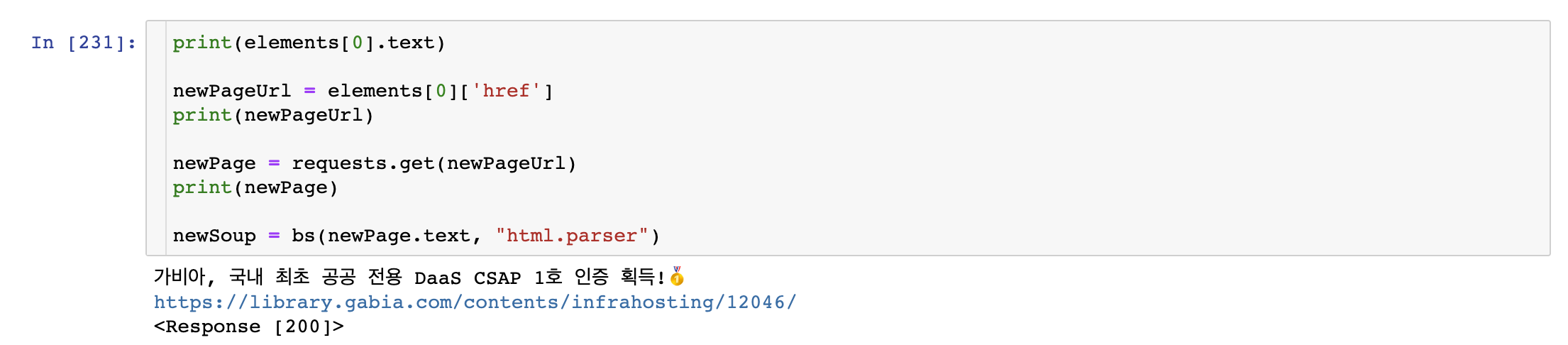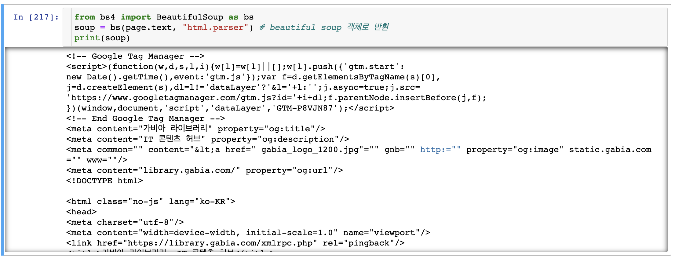 이제 Beautiful Soup으로 소스를 파싱할 준비가 끝났다.