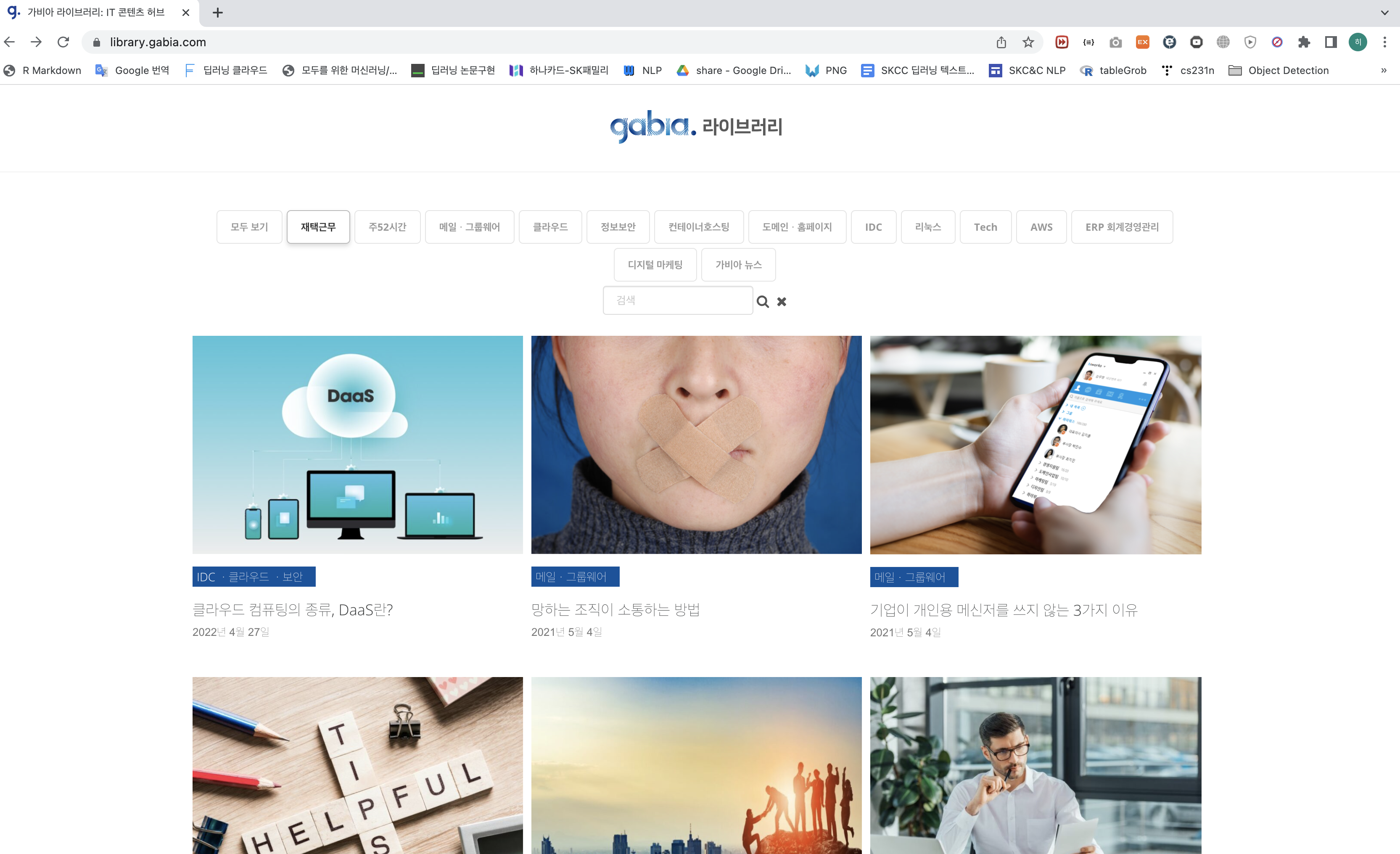 모두보기, 재택근무, 주52시간 등 키워드로 이루어진 메뉴가있고 각 메뉴마다 해당하는 포스팅들이 있다.