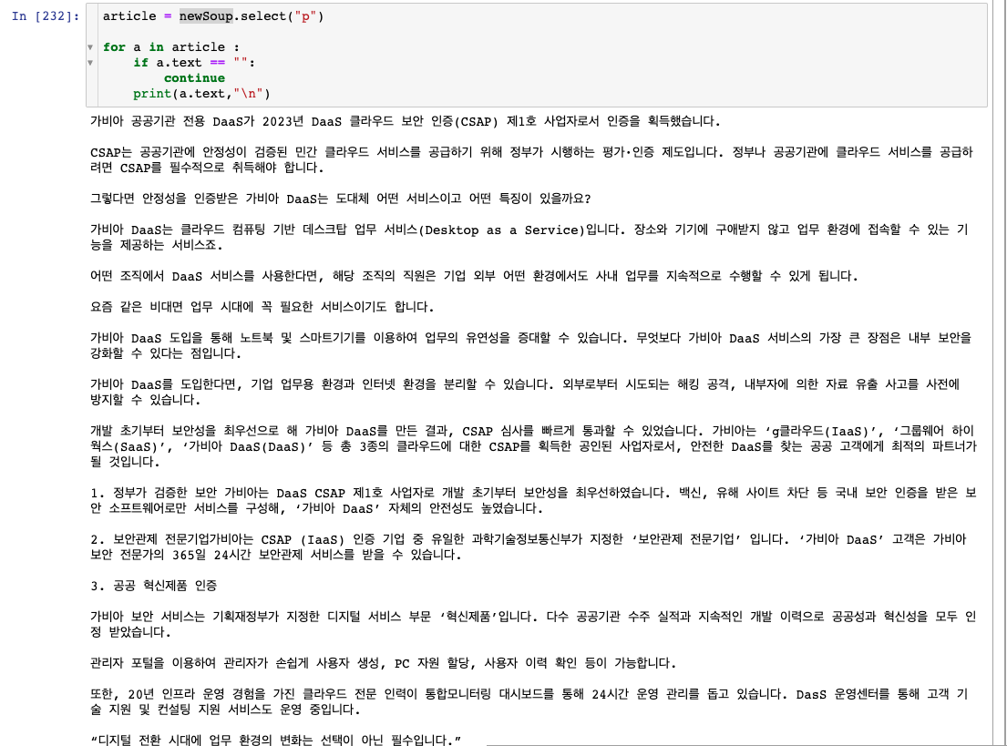 위와 같이 "p" tag만 받아와서 처리해도된다.