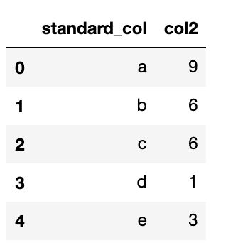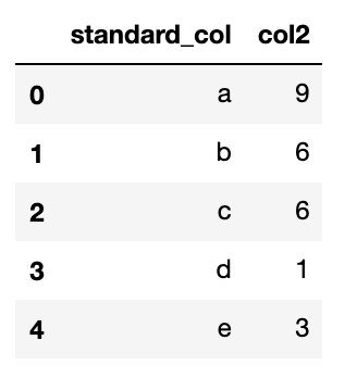 B = pd.DataFrame({'standard_col' : ['a','b','c','d','e'],