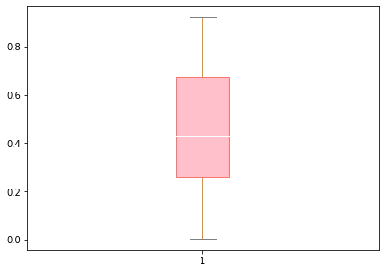 bp = ax.boxplot(data.y, patch_artist=True) # boxplot