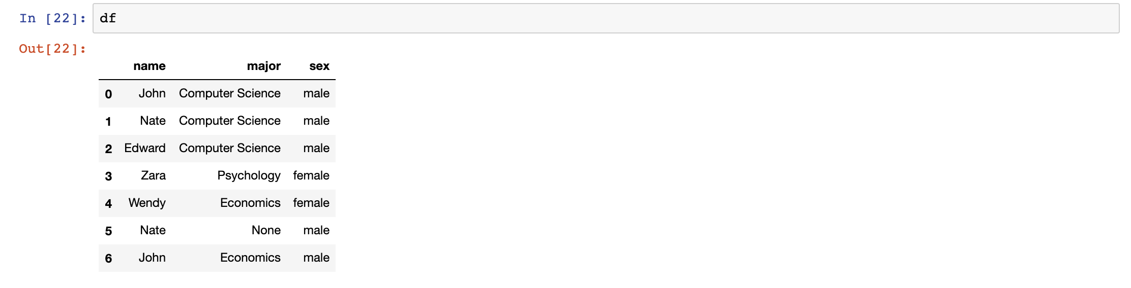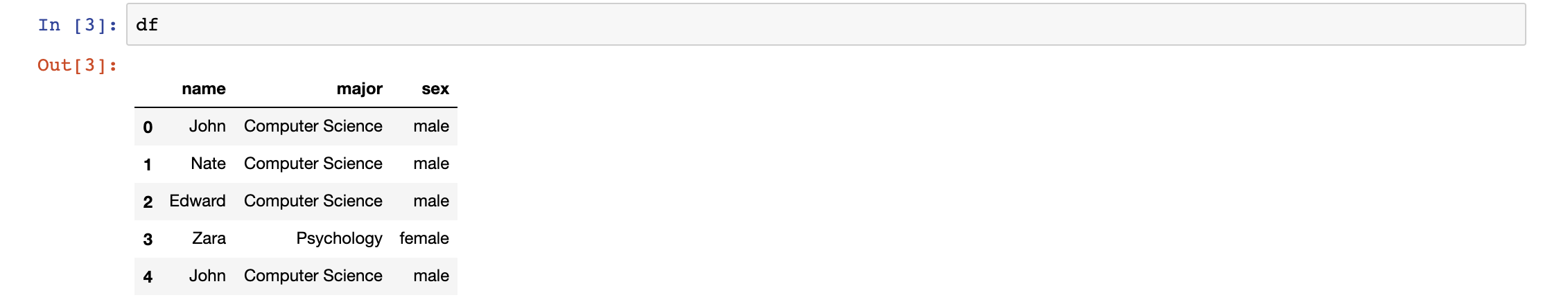 df = pd.DataFrame(student_list, columns = ['name','major','sex'])