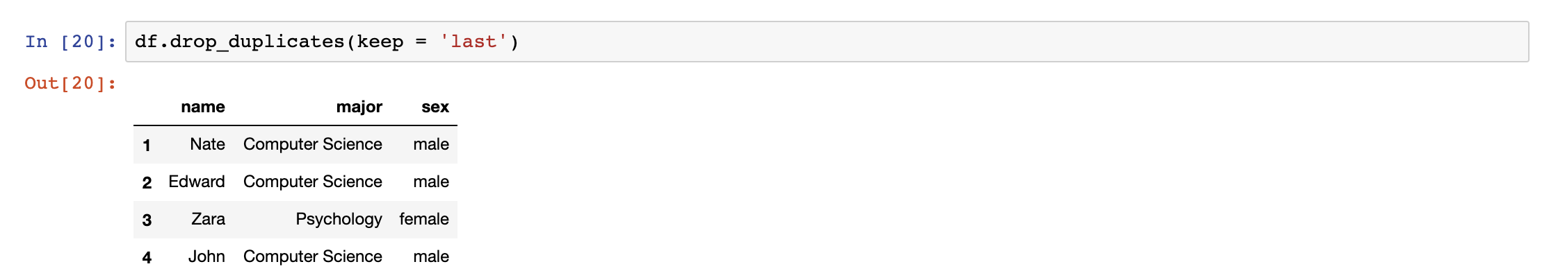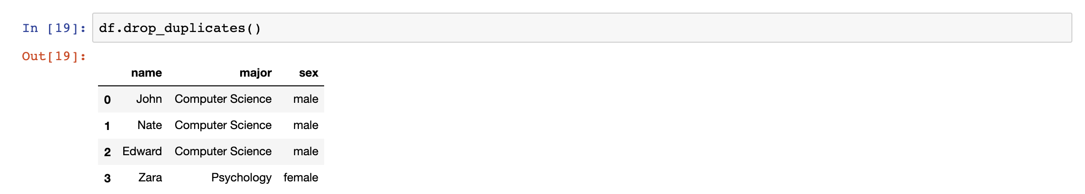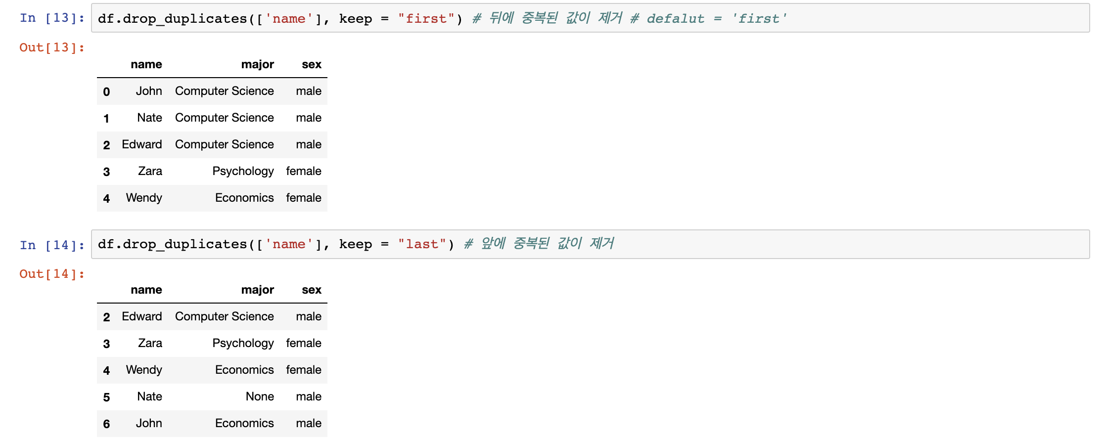 즉, df = df.drop_duplicates() 로 할당해 주어야 df 에서 중복 데이터가 삭제된다.