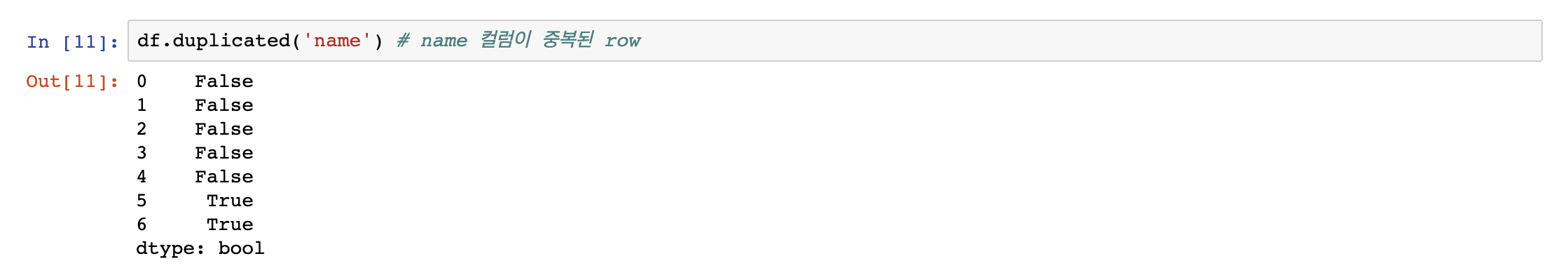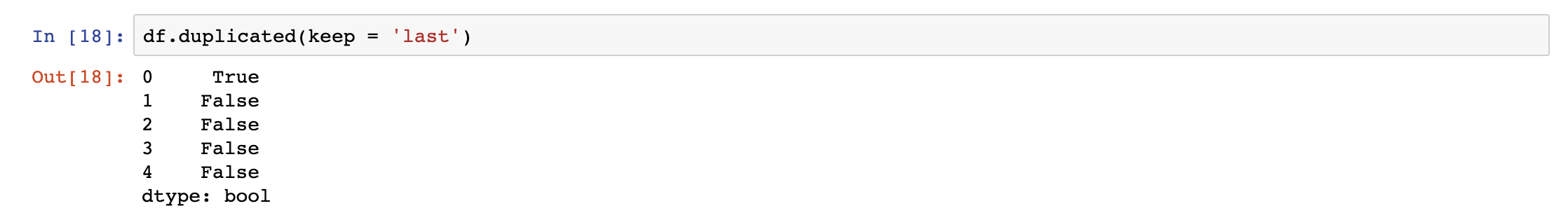 참고로 keep = 'last' 를 지정해주면 이후 중복되는 데이터가 아닌 앞에 위치에 True 임을 확인 할 수 있다.